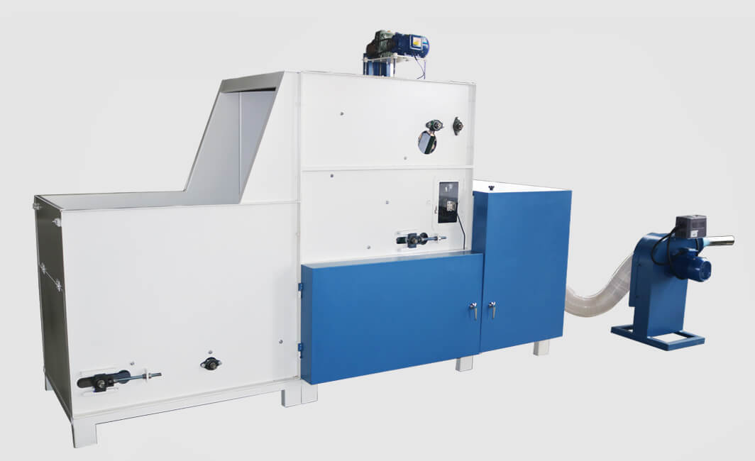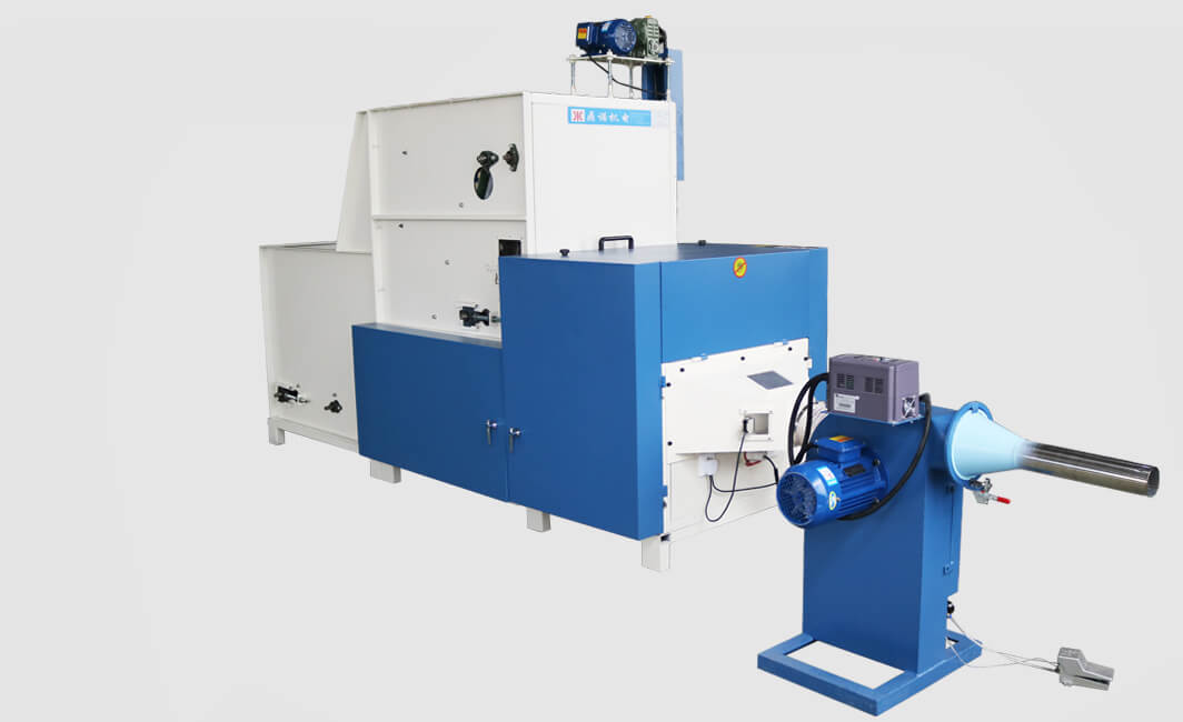 充裝:通過風機噴棉充裝枕芯、靠墊、坐墊、玩具等,安全可靠,均勻飽滿、外形美觀。可定制充棉口大小,結構合理,操作簡便,自動化程度高。所充裝的枕芯均勻豐滿、外形美觀。
