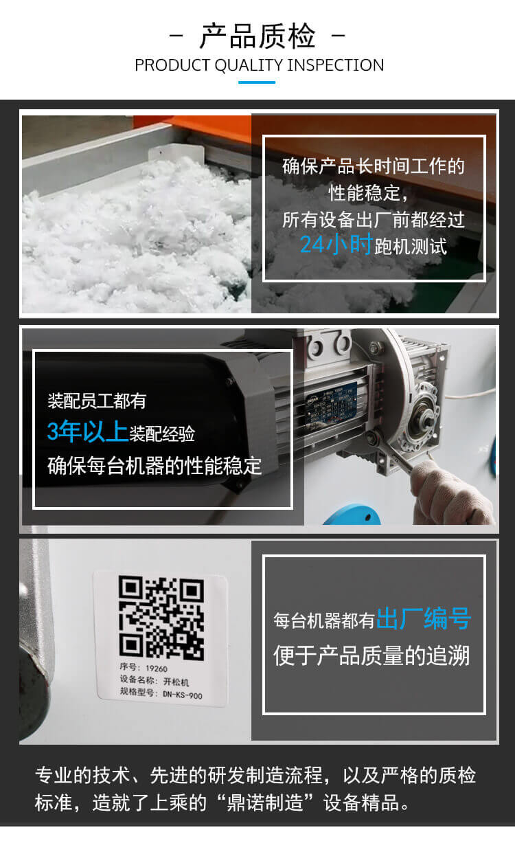 3、配有防纏繞棉設計,無需頻繁清理,影響開松的產量和質量。
