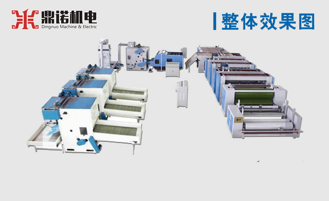 大棚毛氈生產(chǎn)線采用襪子廠、服裝廠、制鞋廠、被服廠等布邊角料為原料,經(jīng)開松、梳理成網(wǎng)、針刺、成卷而制成的具有一定拉力的纖維氈。本生產(chǎn)線所生產(chǎn)出的大棚毛氈具有抗磨抗拉的優(yōu)質(zhì)特點(diǎn),可以調(diào)節(jié)克重,產(chǎn)品的寬幅。具體配置如下: | |||