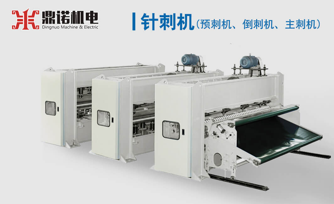 | 功能 | 棉胎從鋪網(wǎng)機(jī)出來(lái)先進(jìn)入預(yù)刺機(jī),然后入倒刺機(jī),最后進(jìn)主刺機(jī)。針刺機(jī)通過(guò)主軸、偏心機(jī)構(gòu)、導(dǎo)桿等帶動(dòng)針板梁作.上下往復(fù)運(yùn)動(dòng),通過(guò)刺針?lè)磸?fù)穿刺,來(lái)加固棉網(wǎng) | ||